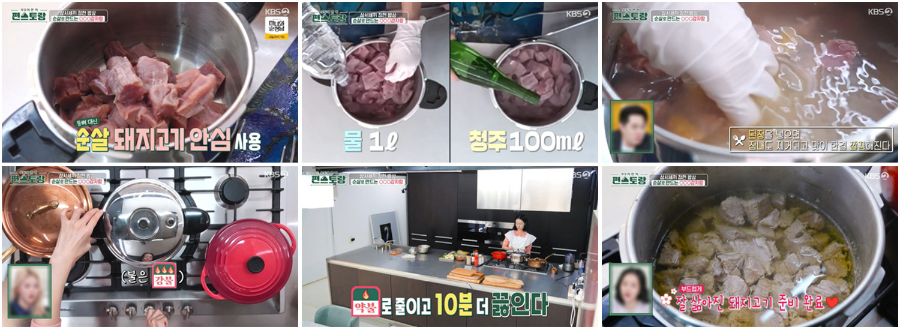 218회 신상출시 편스토랑에서 이정현은 돼지고기 안심을 활용해 감자탕+김치찌개+비지찌개의 매력을 모두 담은 콩비지감자탕 만드는 법을 알려줬는데요.