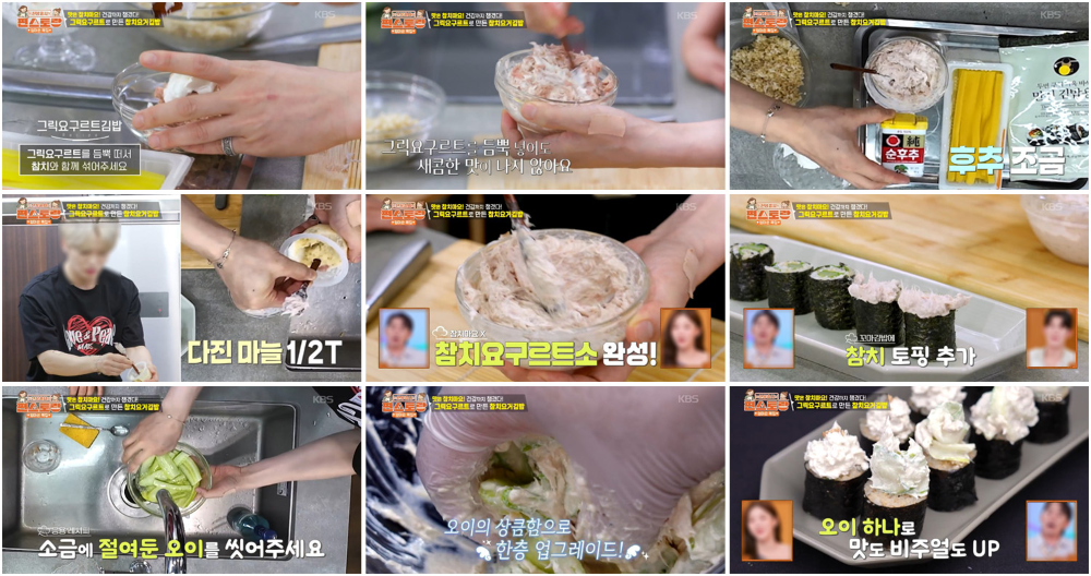 290회 신상출시 편스토랑에서 김재중은 다이어트 음식으로 마요네즈 대신 그릭요구르트를 활용해 참치김밥 맛이 나는 참치요거김밥 만드는 법을 공개했는데요.