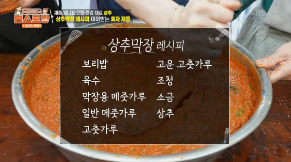상추, 보리밥, 육수, 막장용 메줏가루 1kg, 고춧가루 1kg, 일반 메줏가루 500g, 고운 고춧가루, 조청, 천일염, 소주, 건다시마