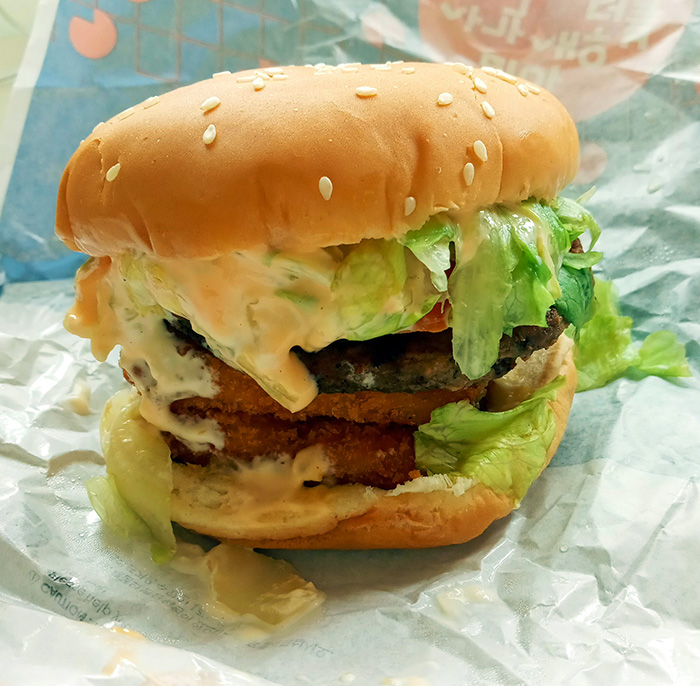 새우패티가 비프 패티의 맛보다 진해서 그런지 새우버거의 맛을 크게 해치지 않고 맛있었습니다.