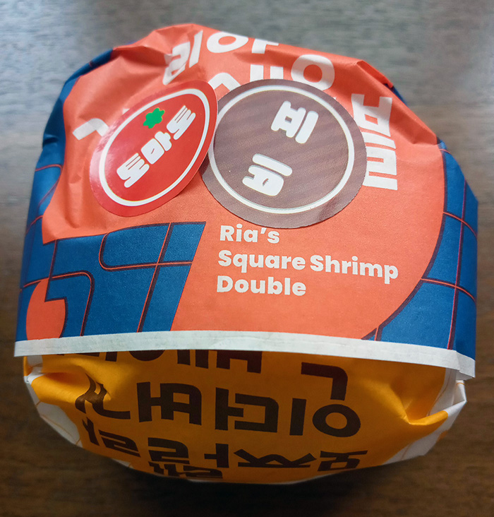 리아 사각새우 더블버거는 미니새우패티 2장이 들어간 새우버거 마니아를 위한 버거라고 하는데요.
