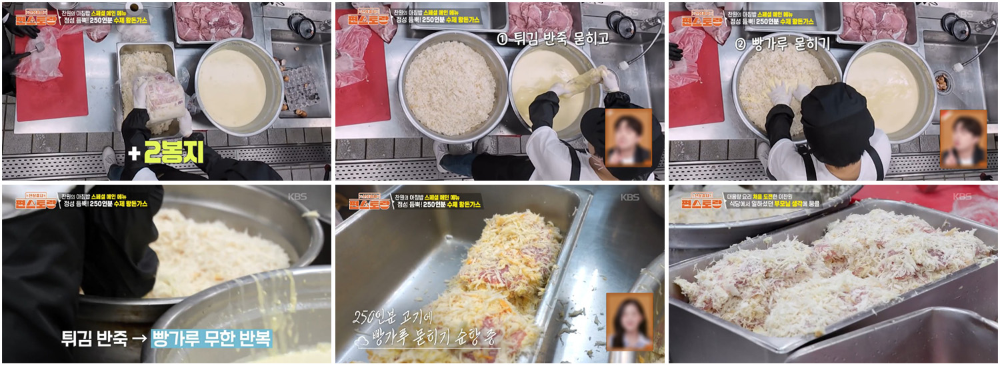 6. 손질된 고기를 튀김반죽→습식 빵가루 순으로 묻혀줍니다.