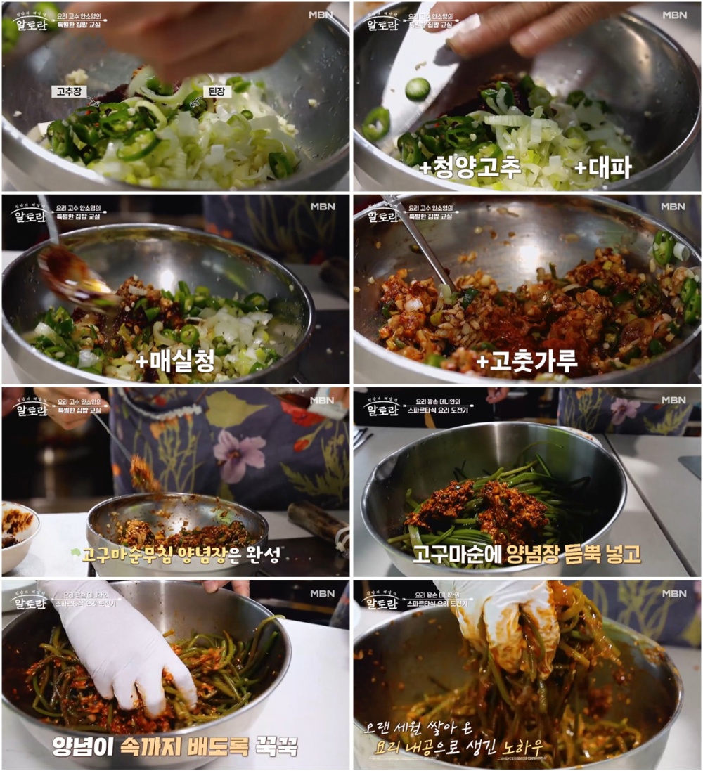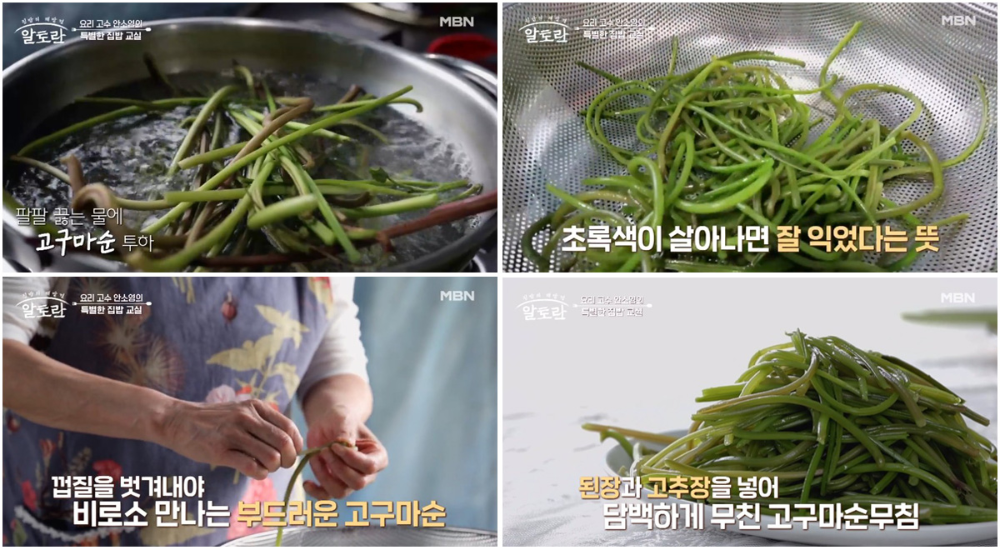 안소영 배우는 아삭한 식감이 그대로 살아 있는 고구마순무침 만드는 법을 알려주셨는데요.