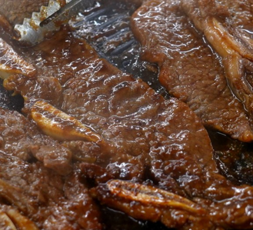 9. 총 2일 동안 숙성한 갈비를 달궈진 팬에 올려 노릇하게 구워줍니다.
