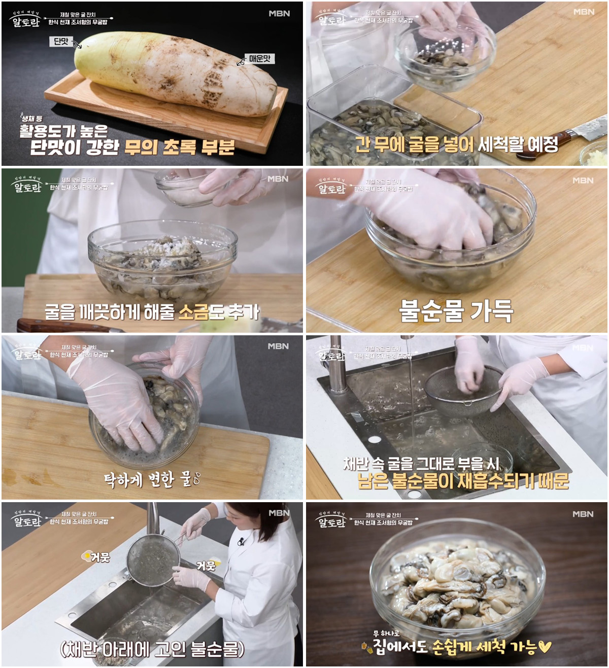 (굴은 많이 세척할수록 단맛과 함께 본연의 맛과 향이 빠지는데 간 무를 넣으면 굴의 단맛을 잡아주는 역할을 합니다.