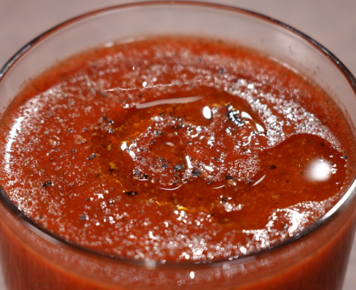 4. 믹서기에 찐 비트+당근+토마토+브로콜리+파프리카+물 150ml+소금 1작은술을 넣고 곱게 갈아줍니다.