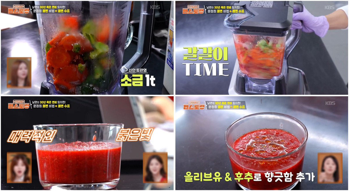 304회 신상출시 편스토랑에서 문정희는 묵은 변비 해소와 항산화 효과로 건강에도 좋은 쾌변수프 만드는 법을 공개했는데요.