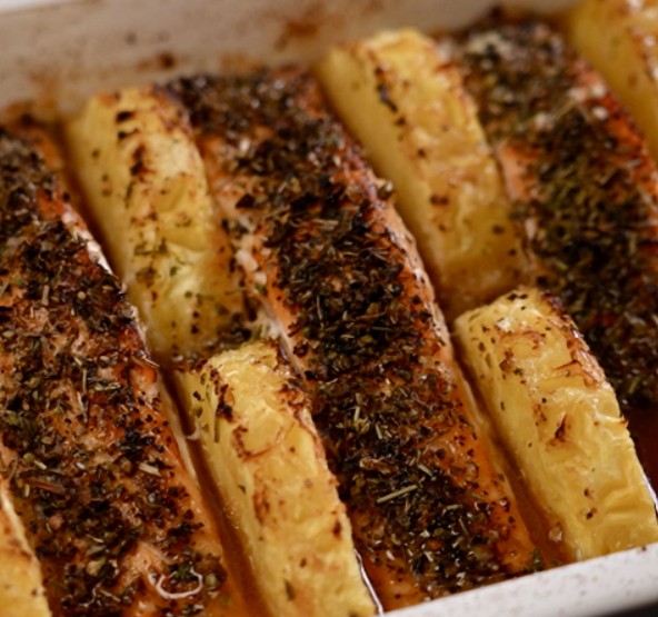 (허브시즈닝은 보기 좋게 연어 위에만 뿌려주세요!)