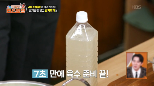 7초 육수 재료: 멸치다시다 1포(8g), 순후추, 물 1.5리터