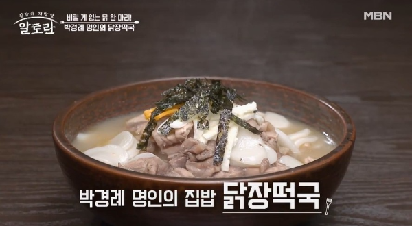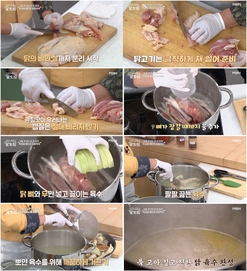 박경례 명인은 닭 한 마리로 만든 닭육수를 활용한 닭장떡국 만드는 법을 알려주셨는데요.
