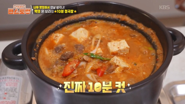 311회 신상출시 편스토랑에서 남보라는 묵은지와 한우우물육수를 활용해 10분 안에 청국장 만드는 법을 공개했는데요.