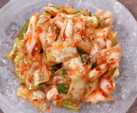 (고춧가루로 양배추의 색을 입히는 느낌으로 고춧가루를 적당히 넣고 버무려주세요!)