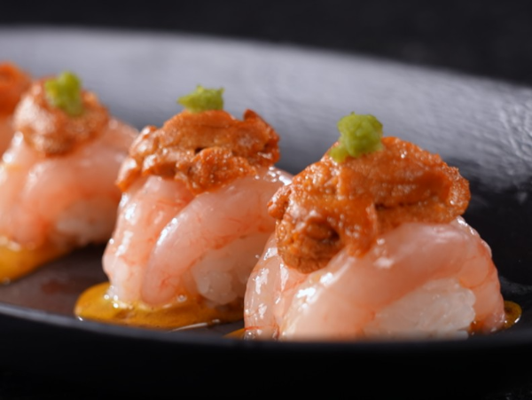 (기호에 따라 성게알을 함께 올려주면 더 맛있는 단새우초밥을 즐길 수 있습니다.)
